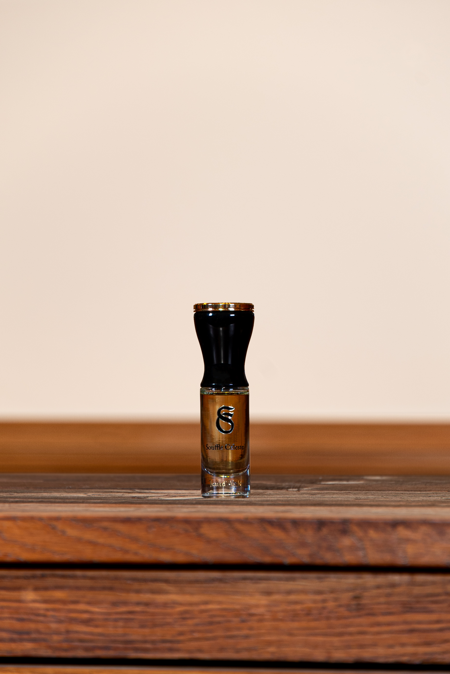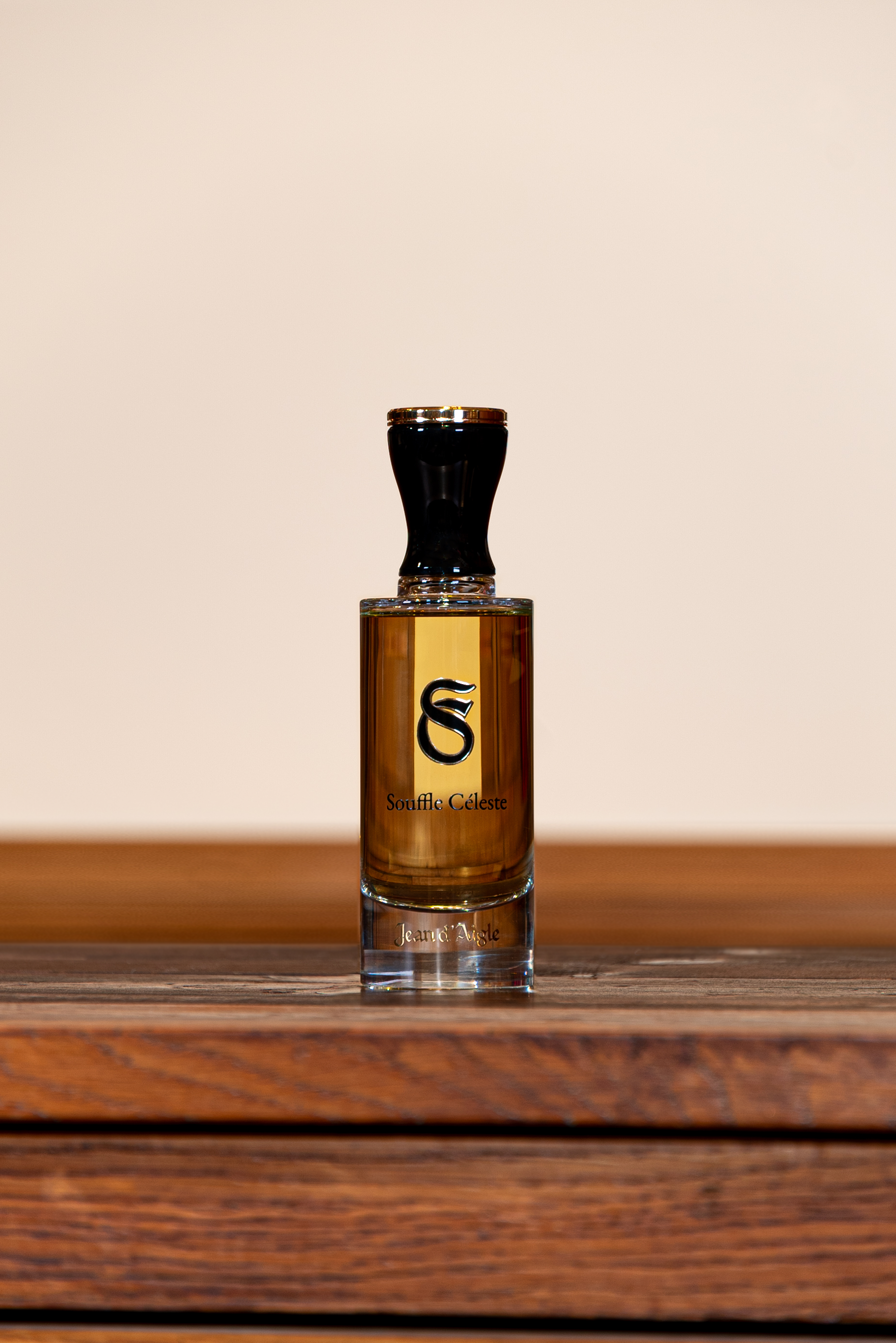 Souffle Céleste est née de la tentation de créer une note poudrée originale en redonnant à la sauge sclarée son caractère de noblesse pour un effet de bien-être rassurant sur une nuque, un poignet, un col de chemise et jouer sur les différentes textures apportées par les matières premières.